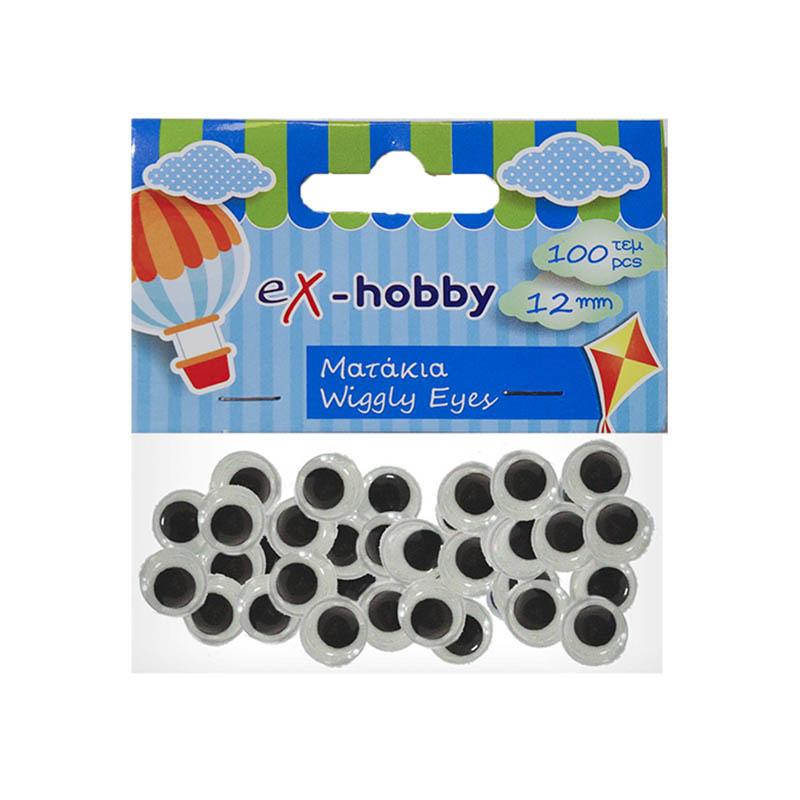 Ματάκια χειροτεχνίας από την σειρά eX-HOBBY Κινούμενα, στρόγγυλα ματάκια Σε συσκευασία των 100 τεμαχίων Με διάμετρο 12mm Για εντυπωσιακές παιδικές χειροτεχνίες και κατασκευές στο σχολείο στο σπίτι ... παντού