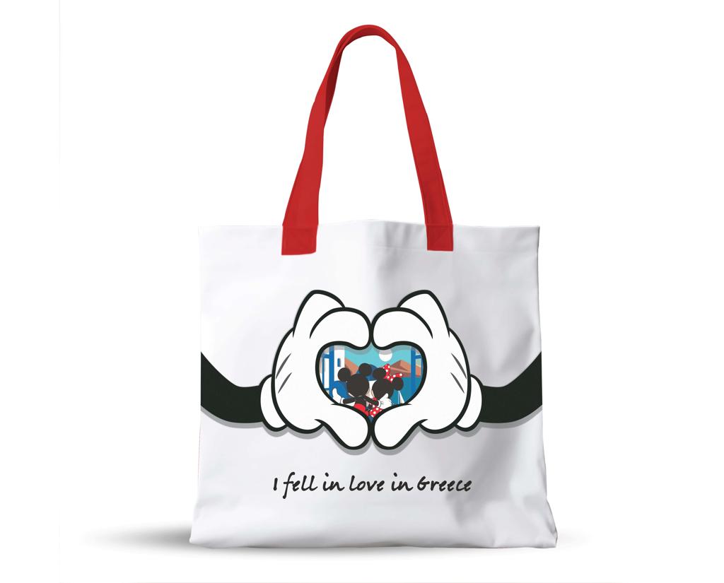 ΤΣΑΝΤΑ SHOPPING ΚΑΜΒΑΣ 39Χ32Χ11ΕΚ ΝΕΣΕΣΕΡ ΜΕ ΦΕΡΜΟΥΑΡ 19X16ΕΚ I FELL IN LOVE IN GREECE MICKEY