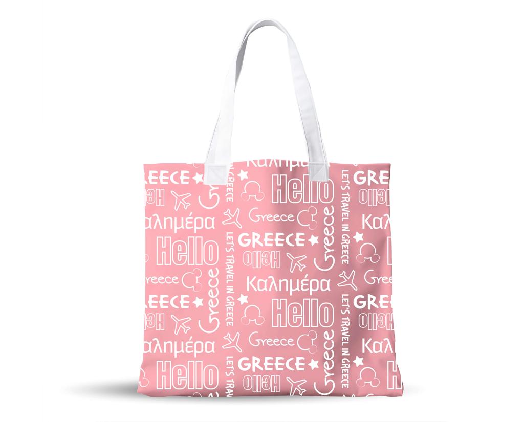 ΤΣΑΝΤΑ SHOPPING ΚΑΜΒΑΣ 39Χ32Χ11ΕΚ ΝΕΣΕΣΕΡ ΜΕ ΦΕΡΜΟΥΑΡ 19X16ΕΚ HELLO GREECE ΜΙΝΝΙΕ