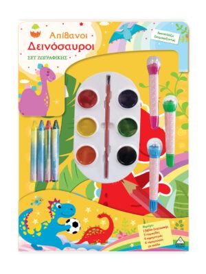 Διασκέδασε χρωματίζοντας τους απίθανους δεινόσαυρους! Περιέχει: 1 βιβλίο ζωγραφικής 3 σφραγίδες 4 κηρομπογιές 6 νερομπογιές με πινέλο